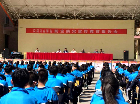 市人防办、教育局联合在庆阳七中开展防空防灾宣传教育报告会